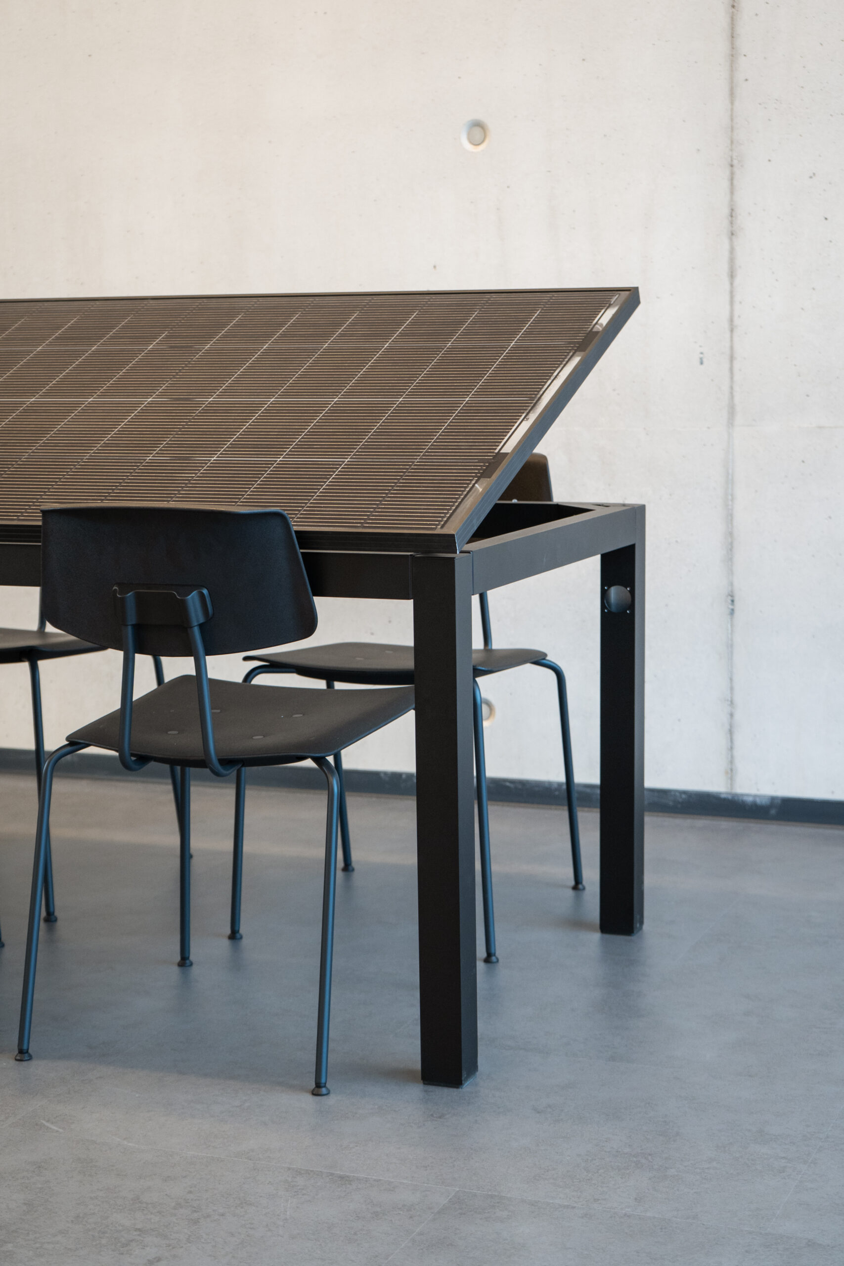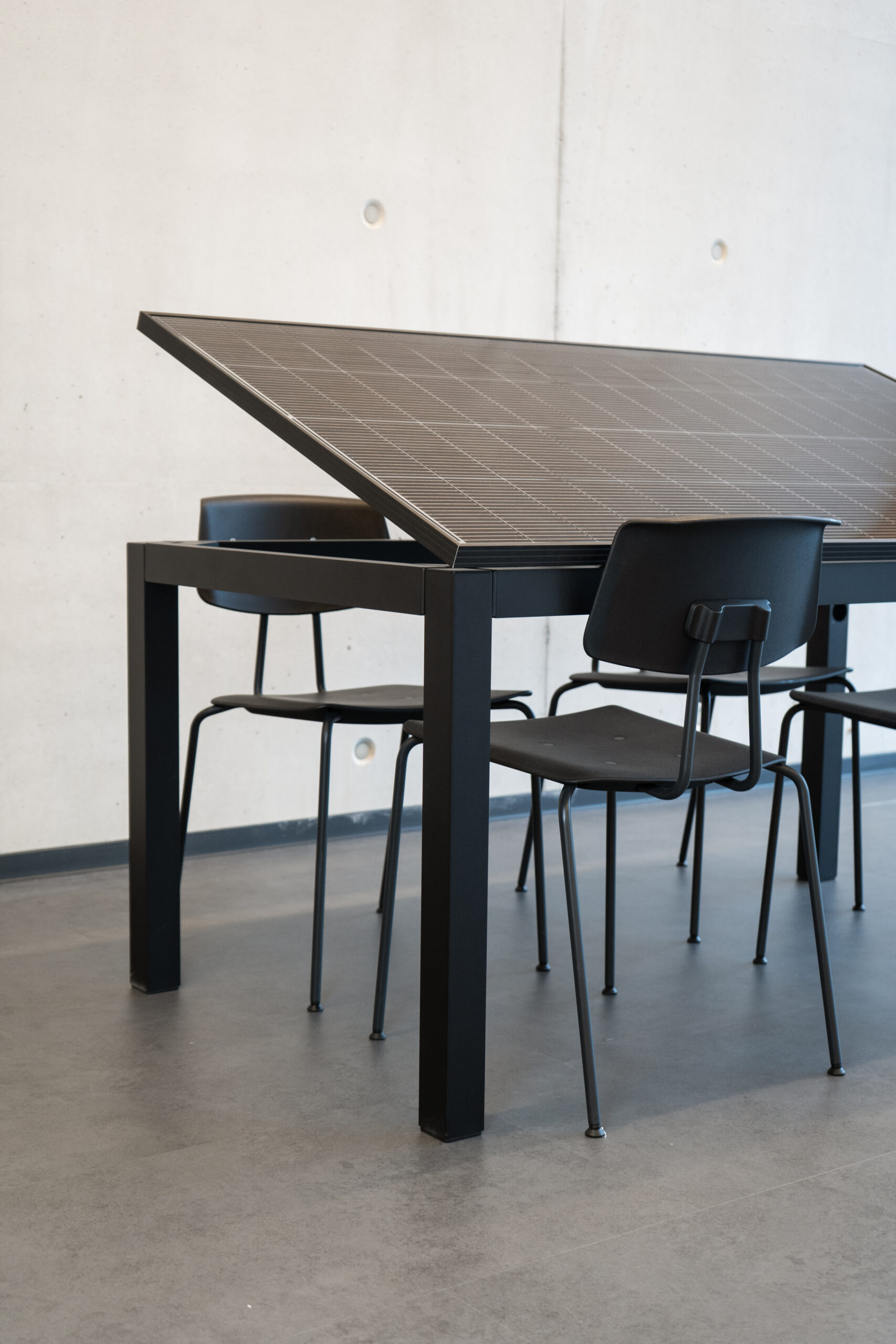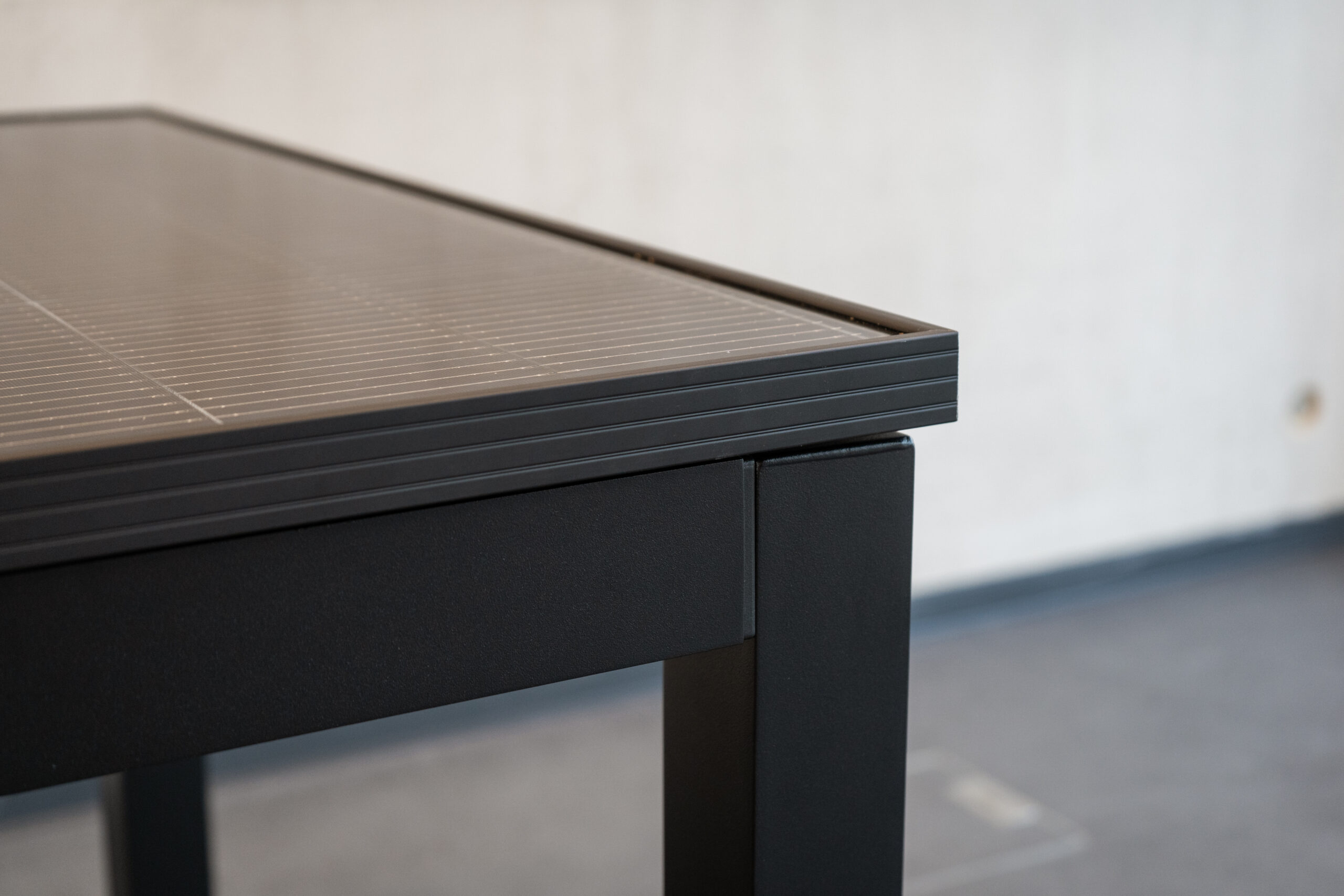 Der Solartisch Sustable mini ist ein eleganter Solartisch aus pulverbeschichtetem Aluminium mit integriertem 315 Wp-Solarmodul und 350 W-Mikrowechselrichter – ideal für Balkon, Terrasse oder Garten. Dank der integrierten Gasdruckdämpfer lässt sich die Tischplatte mühelos in den perfekten Winkel von 20° neigen, um die Sonneneinstrahlung optimal zu nutzen. Als wetterfestes Plug-&-Play-Tischkraftwerk erzeugt er nachhaltig Strom und spart dir ganz einfach Energiekosten.