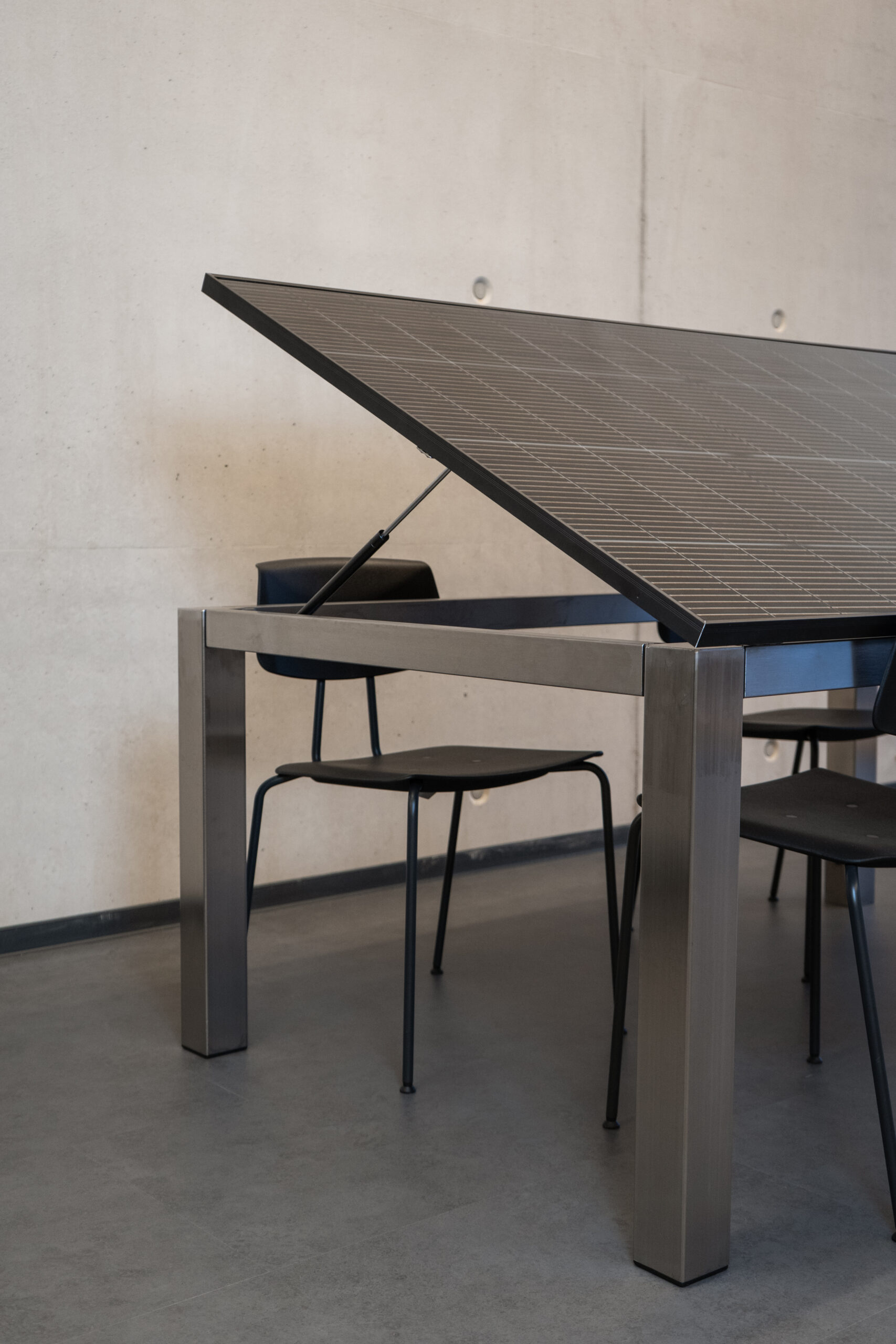 Der Solartisch Sustable ONE+ ist ein eleganter Solartisch aus gebürstetem Edelstahl mit integriertem 465 Wp-Solarmodul und 500 W-Wechselrichter – ideal für Balkon, Terrasse oder Garten. Mit seinen im Tischfuß versenkbaren Rollen ist er mobil auf deiner Terrasse und jederzeit bereit für eine Fahrt in die Sonne, wobei ihn die Gasdruckdämpfer in den perfekten Winkel von 20° neigen. Als Plug-&-Play-Tischkraftwerk erzeugt der wetterfeste Solartisch nachhaltig Strom und spart dir ganz einfach Energiekosten.
